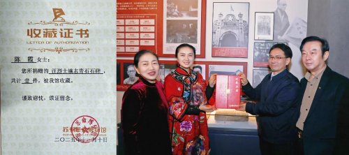 与苏州革命博物馆馆长徐海明合影:“中国好人”陈霞及父母
