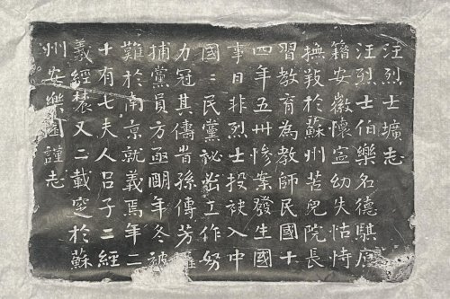 此次展出的《汪烈士圹志》碑便出土于苏州安乐园,经“中国好人”陈霞女士捐赠至苏州革命博物馆。作为祖国大陆首例台湾同胞骨髓移植的受益者,陈霞康复后始终践行“把爱心传递下去”的誓言,多年来深耕公益事业,创办爱心营养厨房、组建陈霞基金会,帮扶无数大病患者家庭。此次捐赠,是她以党建引领公益实践的生动体现,更是对革命先烈精神的深度践行。收到石碑后,苏州革命博物馆立即组织专业力量进行清洁、拓片处理,在保留历史痕迹的同时提升碑文辨识度,让观众得以跨越百年与英烈对话。