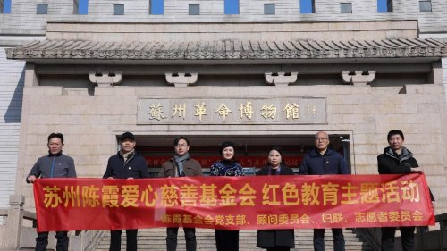 1月7日上午,苏州革命博物馆内红旗招展、暖意融融,苏州市委党史工作办公室主任、苏州革命博物馆馆长徐海明,宣教部主任蔡洵颖热情接待了苏州陈霞爱心慈善基金会一行。基金会理事长陈霞、党支部书记王丛洲、妇女联合会主席卫小红、劝募中心主任杨龙兵、首席顾问兼江苏省中外社会文化交流协会苏州办事处主任徐宝鑫、志愿者委员会副秘书长周家栋,携基金会文化艺术中心爱心画家酒子辰老师共同走进这座红色殿堂,以“党建引领学党史、爱心捐赠传精神”为主题,开展革命历史学习与红色捐赠活动,在沉浸式教育中赓续红色血脉,用双重捐赠践行公益初心与使命。